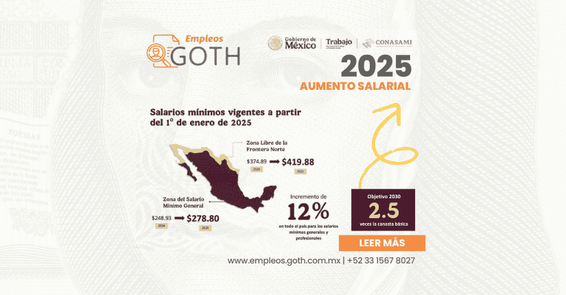 GOTH Consultores y Asociados siendo su aliado estratégico, hace de su conocimiento que, la Presidenta de México, Claudia Sheinbaum Pardo, anunció que tras un buen acuerdo con el sector obrero y empresarial, el salario mínimo para el 2025 tendrá un incremento de 12 por ciento en todo el país, ya que aumentará de 248.93 a 278.80 pesos diarios en la Zona del Salario Mínimo General y en la Zona Libre de la Frontera Norte pasará de 374.89 a 419.88 pesos diarios, con lo cual se avanza en el objetivo de que cada trabajador pueda acceder a 2.5 veces la canasta básica para el 2030.